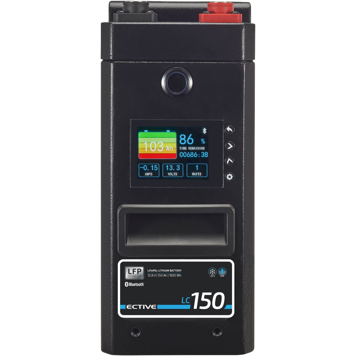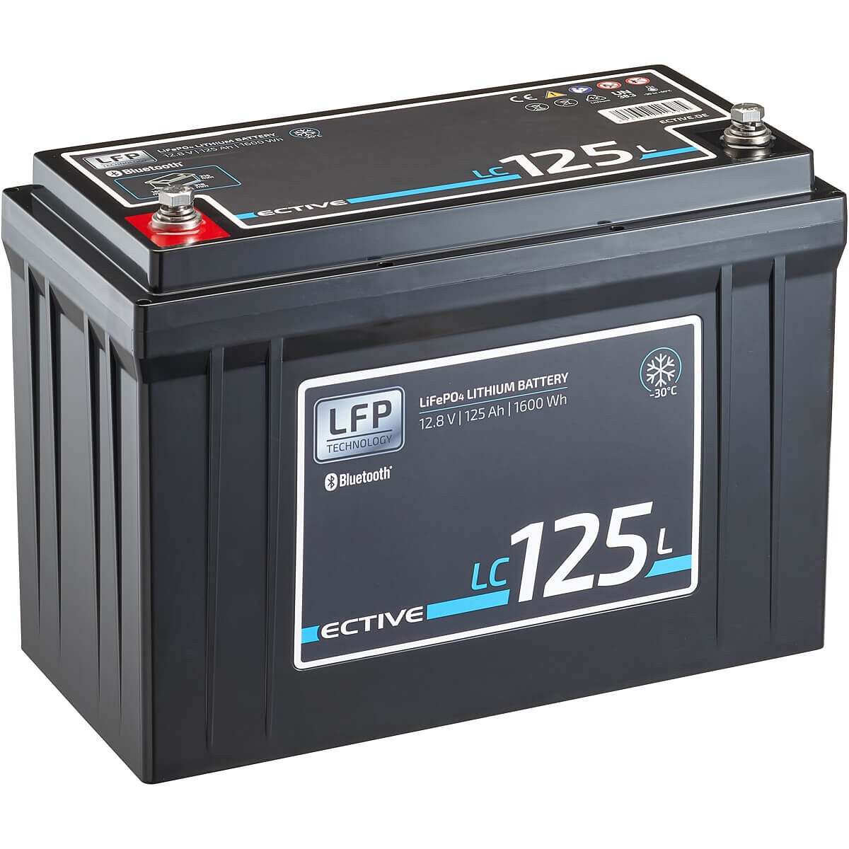 Onze LC-serie lithium-ijzerfosfaat (LiFePO4) batterijen met de innovatieve "lage temperatuur" functie zijn beschikbaar in vijf verschillende maten. Ze zijn uitgerust met een geavanceerd batterijbeheersysteem (BMS), dat bescherming biedt tegen overbelasting, kortsluiting en diepe ontlading. Bovendien is er een geïntegreerde Bluetooth-module, waardoor je je batterij ook op moeilijk bereikbare en niet verwarmde locaties kunt installeren. Je kunt altijd essentiële informatie inzien via de gratis ECTIVE LFP-app, waaronder de temperatuur, het aantal cycli, de laadtoestand en het stroomverbruik. De "Low Temperature"-serie komt met een garantie van vijf jaar.