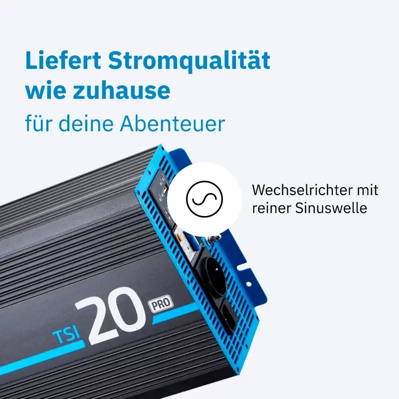 De ECTIVE TSI PRO-omvormers zetten de energie van je 12 V-batterij om in een schone 230 V wisselstroom – ideaal voor gevoelige elektronica en zware belastingen. Met een geïntegreerde RCD, automatische accu- en netprioriteitscircuit en stille ARCTIC-ventilatoren zijn ze de veilige oplossing voor campers, caravans en off-grid opstellingen. Verkrijgbaar in vijf vermogensgroottes, van 1000 W tot 3000 W continu vermogen.